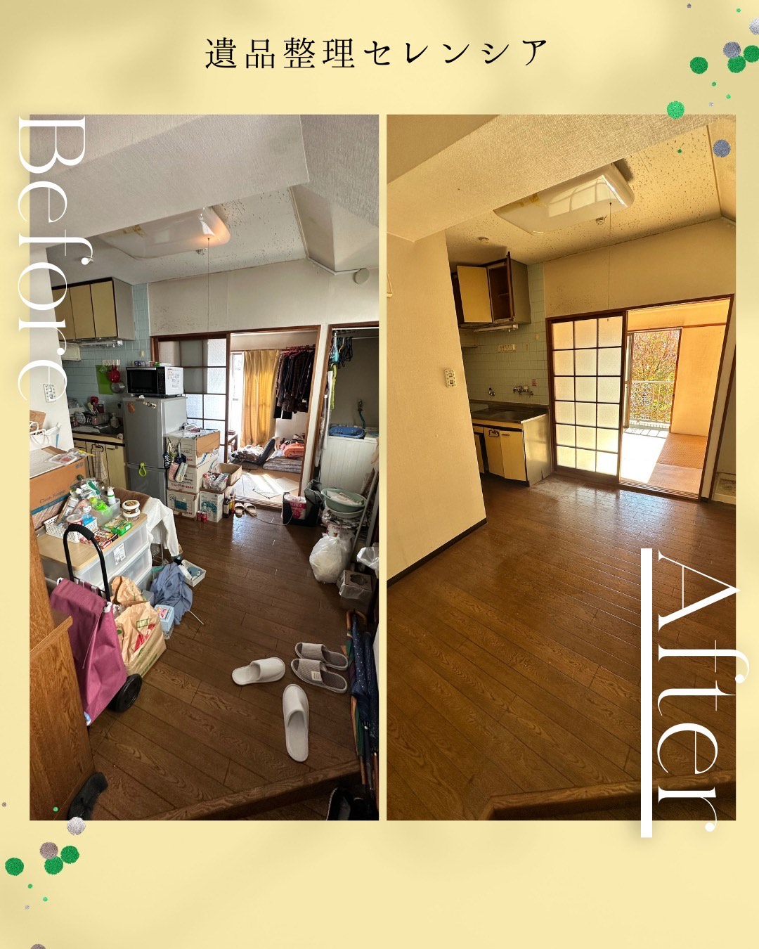 不要物については適切に処理し、最終的にはハウスクリーニングまで含め、一日で作業を完了いたしました。